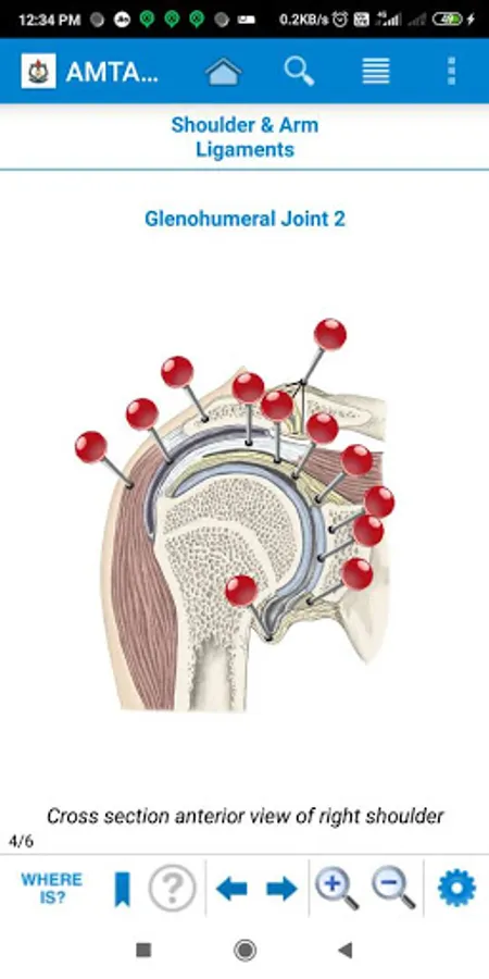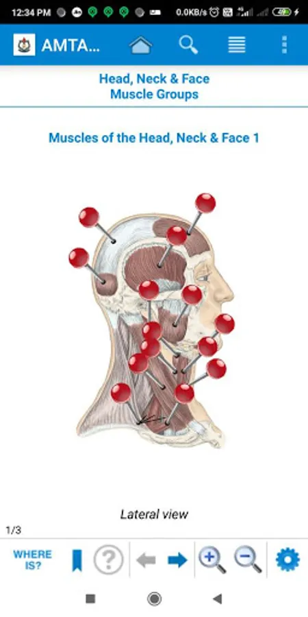 • Multiple options to test your musculoskeletal anatomy knowledge by: 1) answering multiple-choice questions (muscle cards only) 2) locating specific structures, and 3) identifying AOIN points.