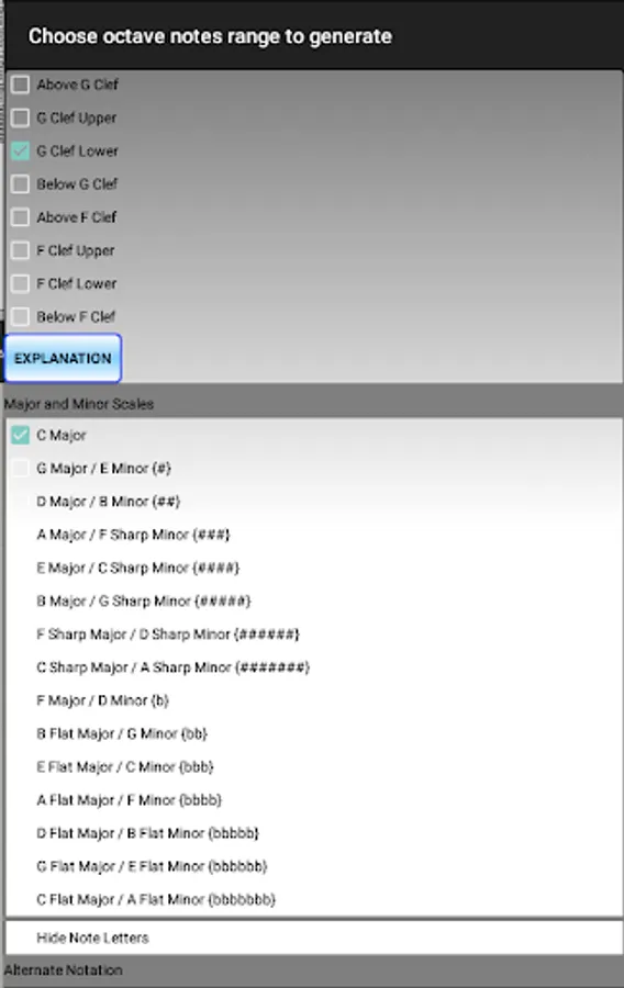 Solfa. Learn to sight read music in G & F Clef. Music notes include above and below the staff. Span 6 octaves. Applies to any instrument. The music notes are generated randomly and not limited to a repeating set. Switch between clefs for even more fun. Answer key for starters. Beginners set the pace by limiting the octave section to learn. Major and Minor Scales (sharps and flats). Speed depends on how fast the music notes are identified. Piano sound can be muted. Great for phones. Perfect for tablets.