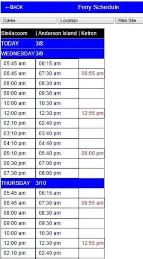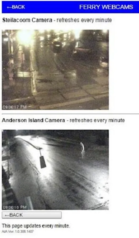 The current effective ferry schedule (adjusted for day-of-week and holidays), ferry-line webcams, and the current ferry position.