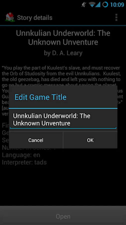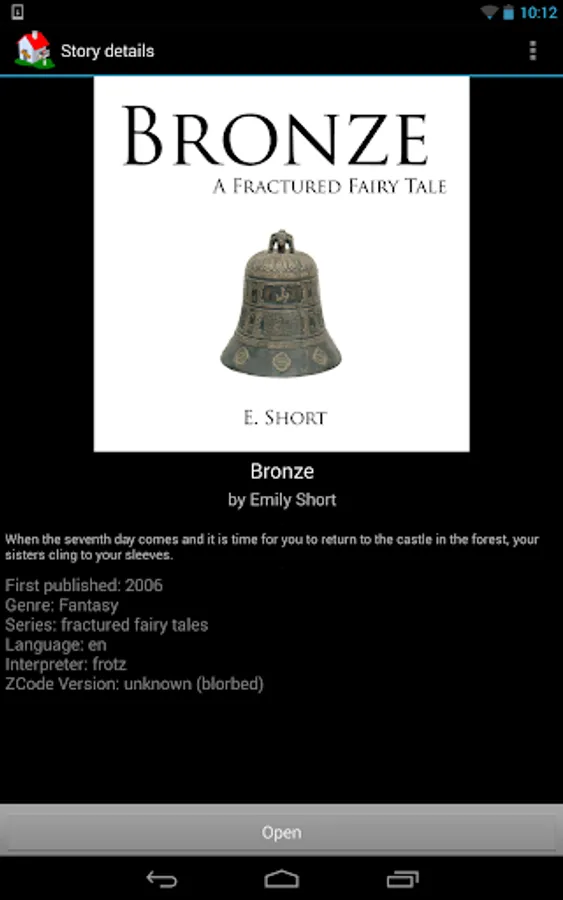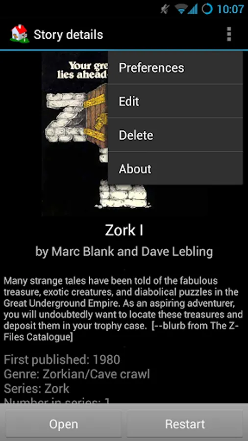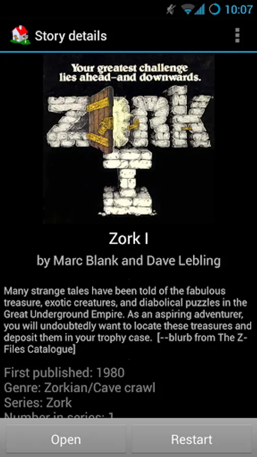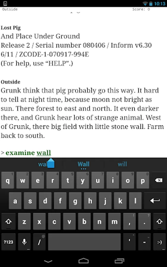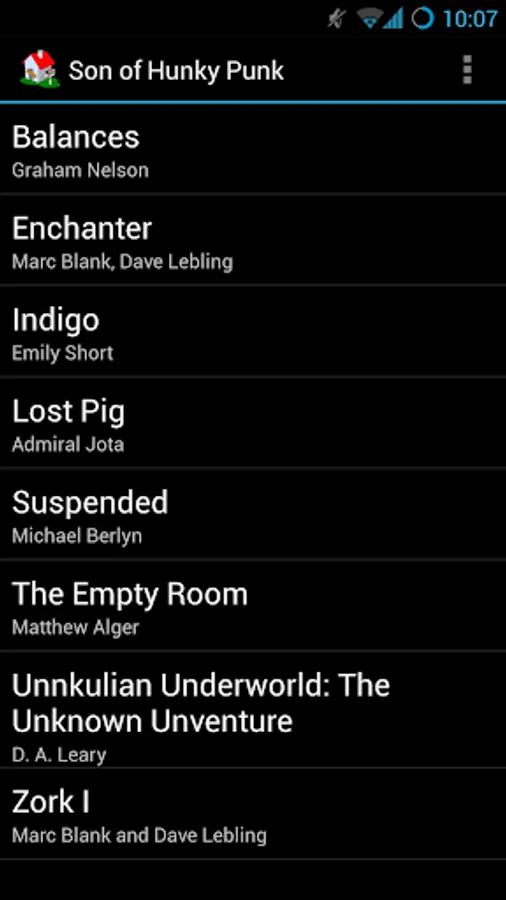 Hunky Punk is an interactive fiction interpreter for Android devices. Stories downloaded on your device can be installed in a library that fetches story information and covers from IFDb. Simply tap on the downloaded story file in your favorite file manager app. Currently Z-Machine (Inform/Infocom games such as Zork) and TADS (Unkuulian Series, and many others) story files are supported.