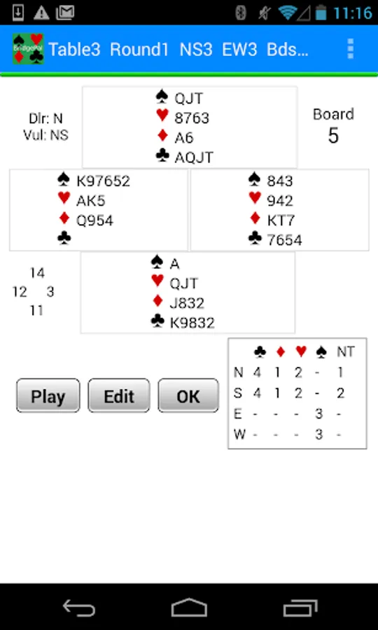 If a hand record file is available, various contract entry validation checks can be performed, and hands may be viewed in the BridgePal app, together with makeable contracts, immediately after they have been played at the table. If hands are shuffled at the table, rather than pre-dealt, a hand record file may be created by entering the hands via the BridgePal app. Hands can be played in double dummy mode on the BridgePal scoring unit with card by card guidance, after they have been played at the table (if the free BridgeSolver app is installed on the BridgePal).