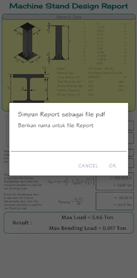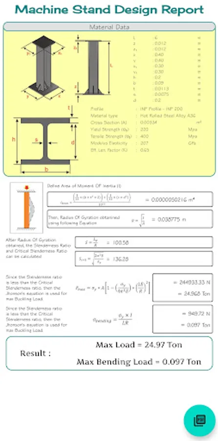 A tool to calculate buckling & bending to obtain maximum safe load for a Machine Stand