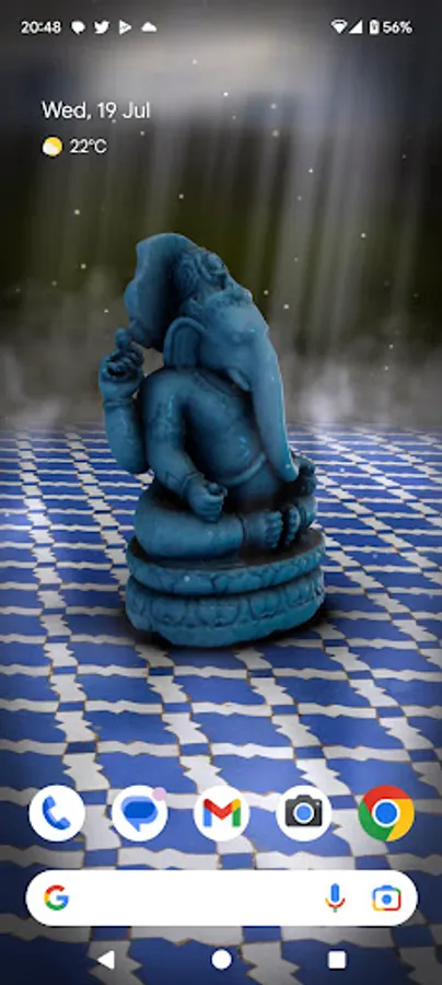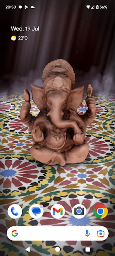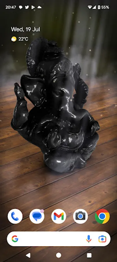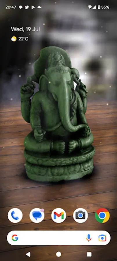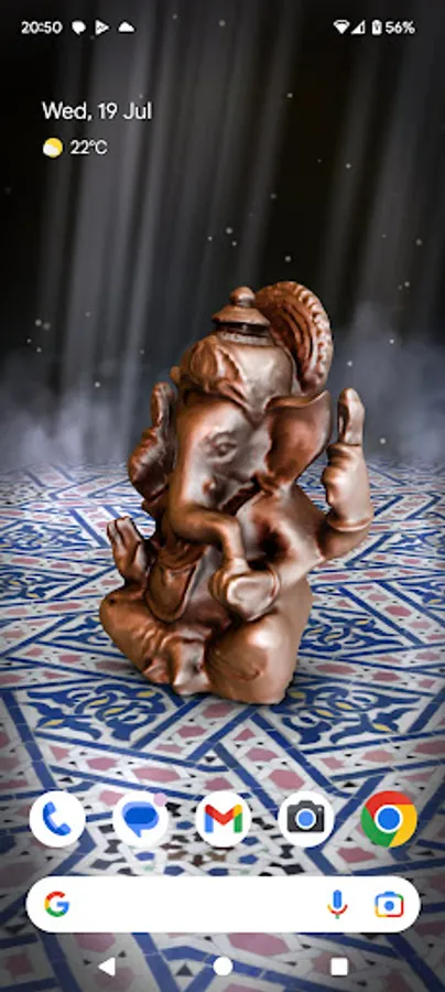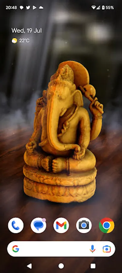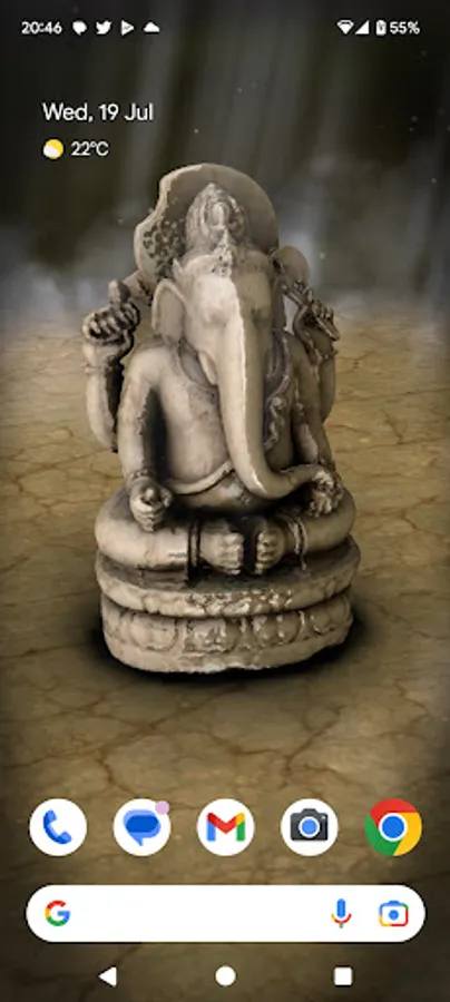 Interact with the live wallpaper by rotating the scene with a simple swipe on the screen or by utilizing the gyroscope feature of your device. Explore the intricate details of the golden Ganesha statuette from various angles and perspectives, allowing you to immerse yourself fully in the divine presence.
