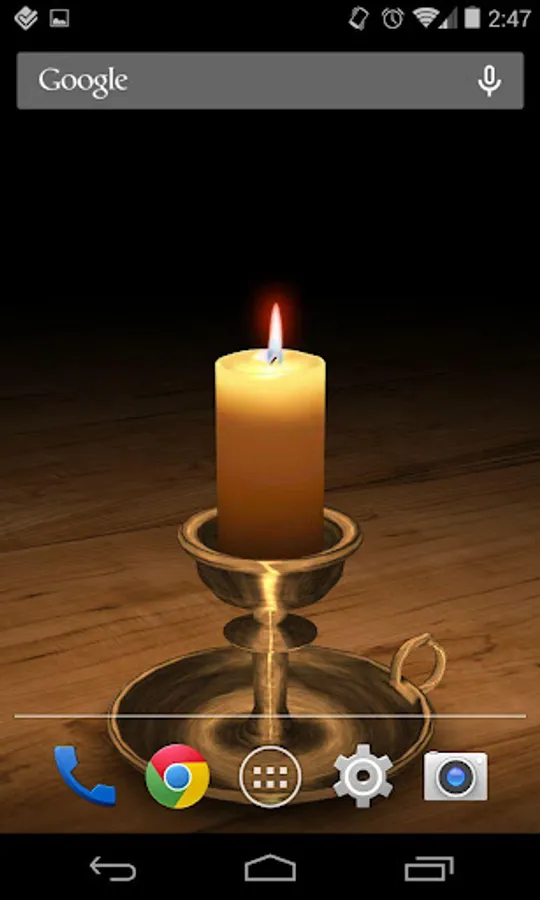 This live wallpaper turns your home screen into antique table lit by flickering candle. Candle melts down as battery of your device drains.
