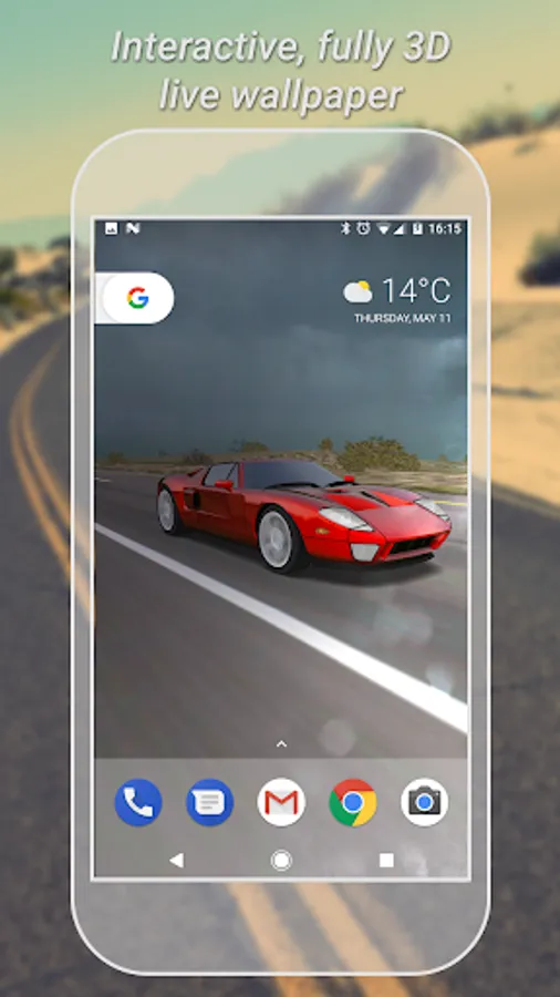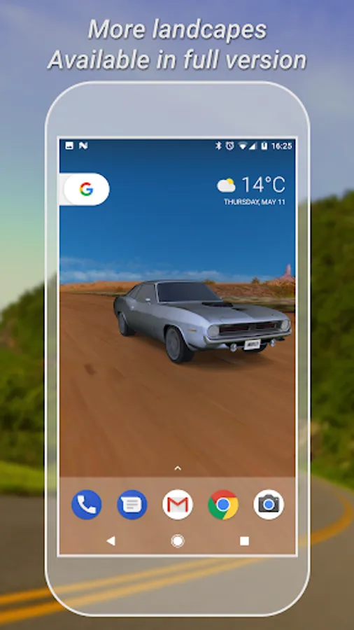 Bring a speeding sports car to home screen of your device. With this live wallpaper you can feel a freedom of driving a highway in a legendary sports car. Mostly straight road slightly twists between hills, and you can watch as car passes by trees and bushes.