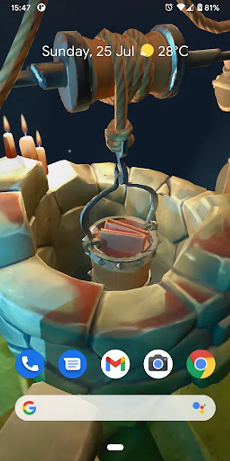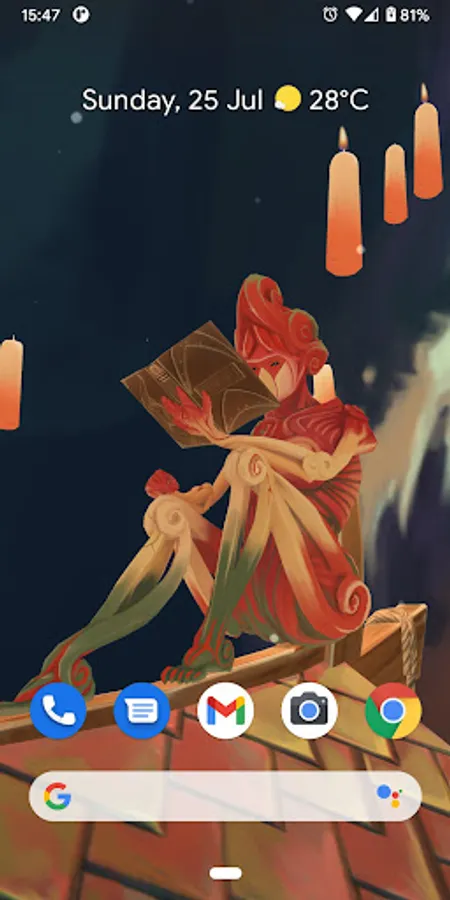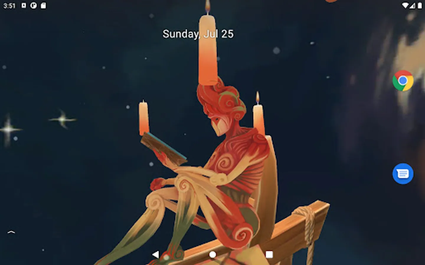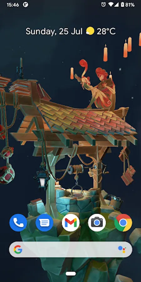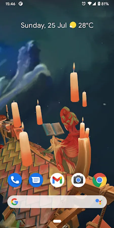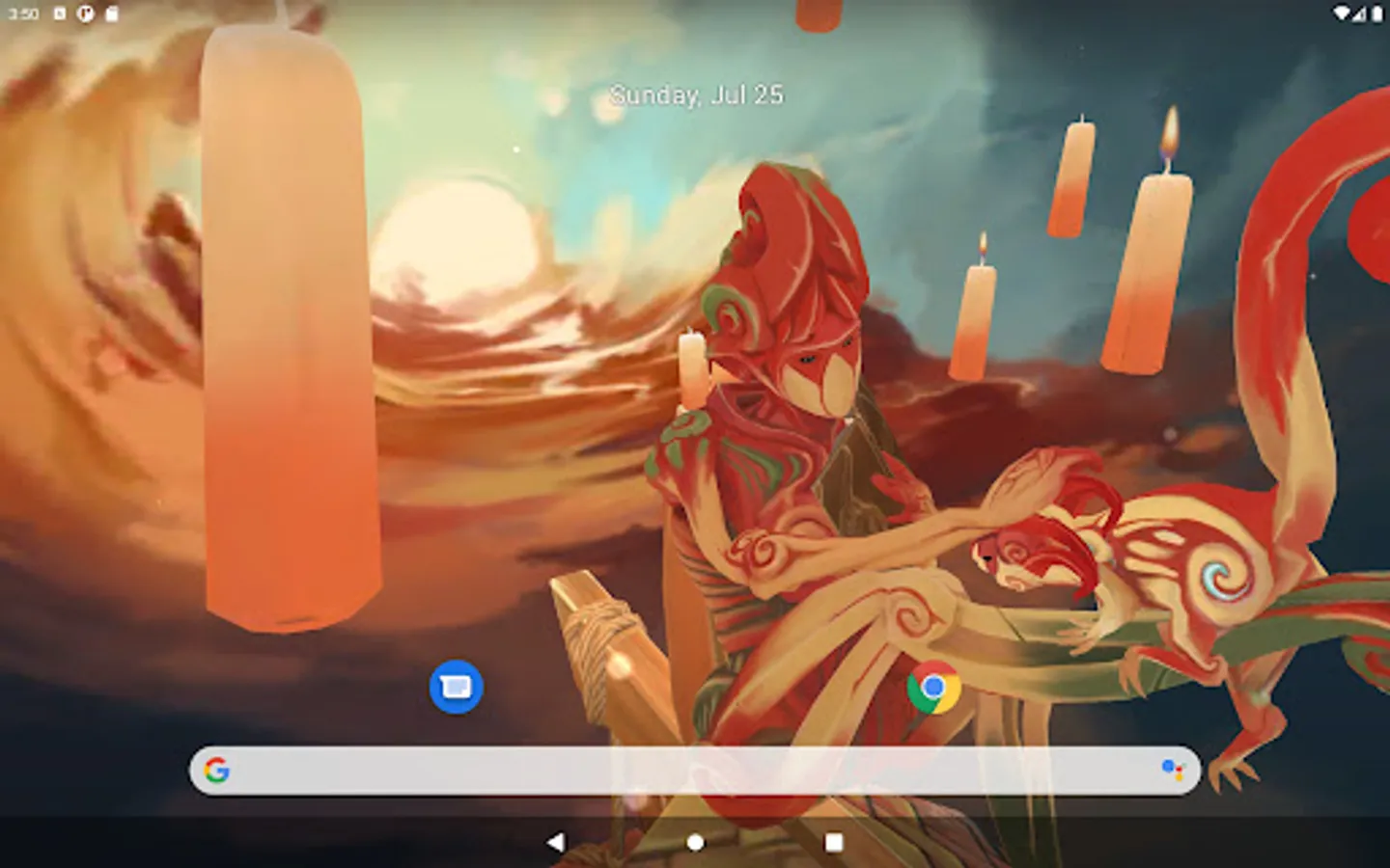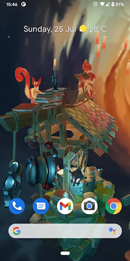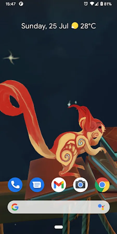 This live wallpaper puts a serene scene of dryad's reunion with his pet squirrel on the home screen of your phone. This happens in a truly magical and secluded place - a well of knowledge which can be found only high up in the sky. Here dryad can relax and get more wisdom from ancient books, if only little furry pet won't beg for more cuddles...
