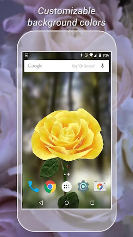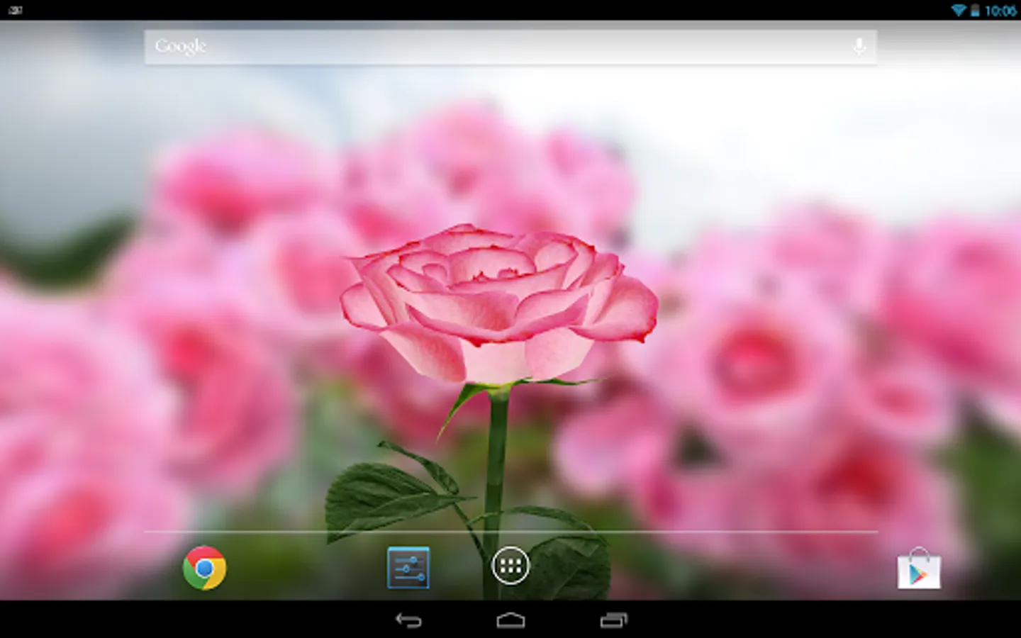 Fully 3D live wallpaper depicting beautiful rose flower reacting to touch gestures. You can rotate flower by swiping through your home screens - scene will change its rotation according to touches.