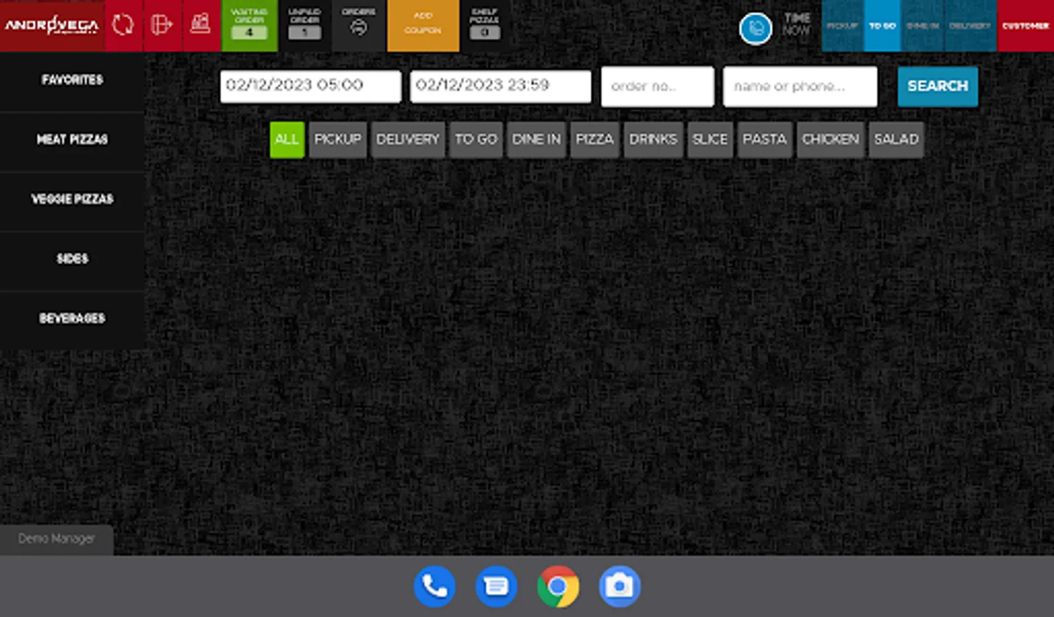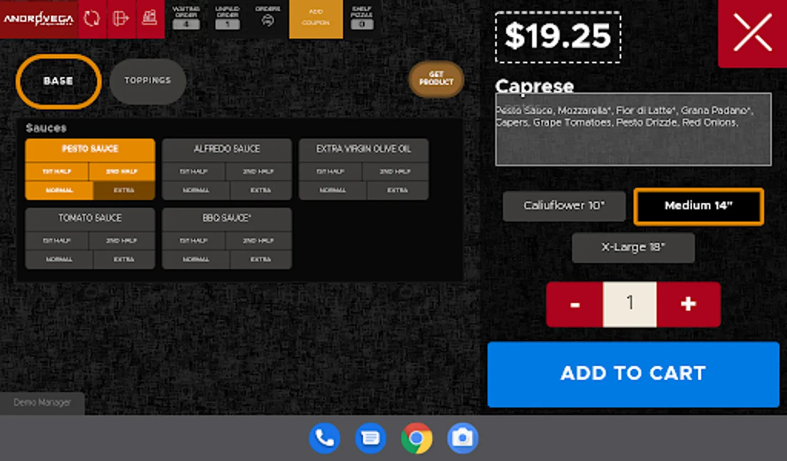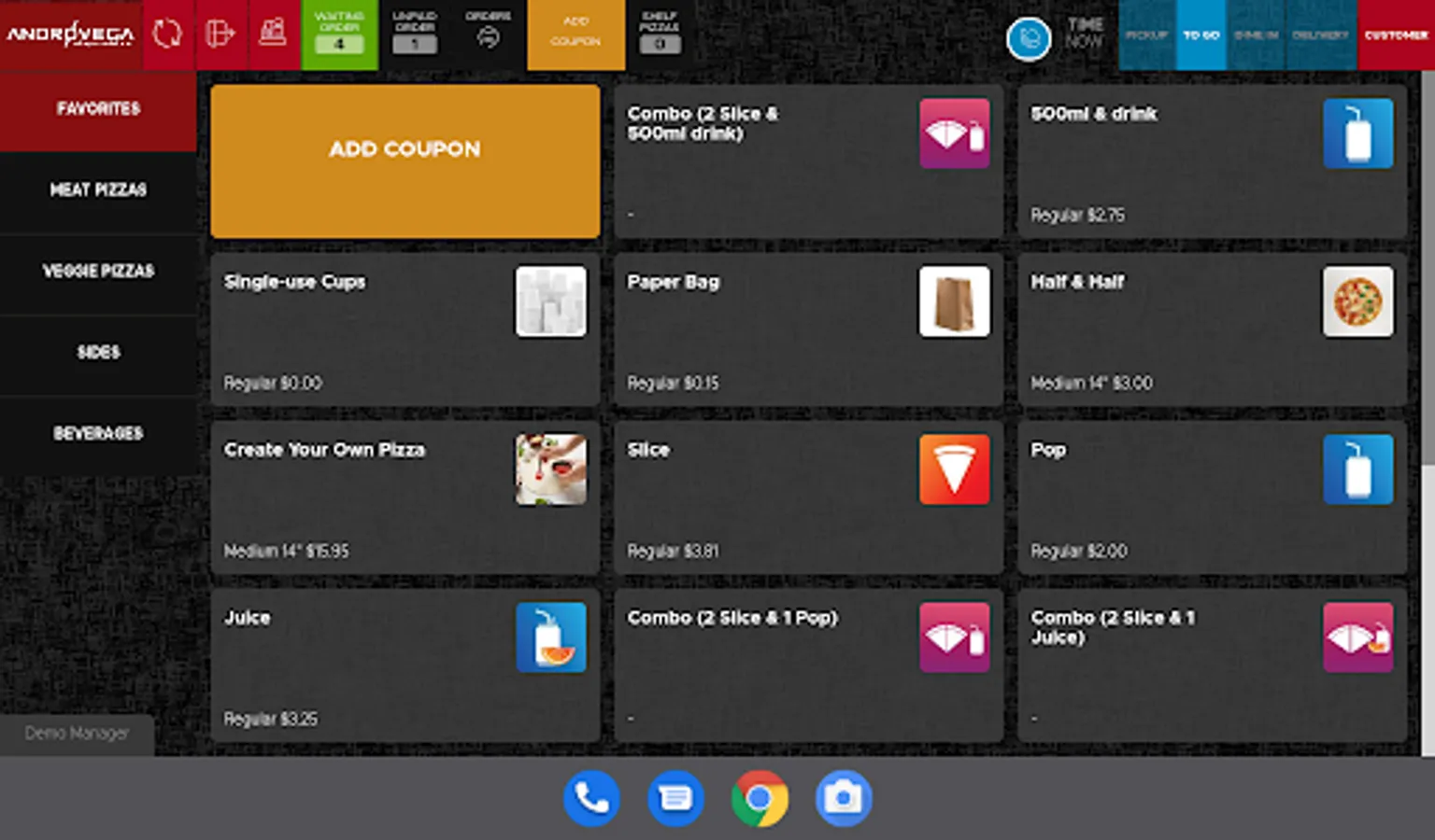 Androvega POS - Point of Sale is perfect for dining restaurant, quick service restaurant, bar/nightclub, pizzeria and coffee shops, food trucks and food events.