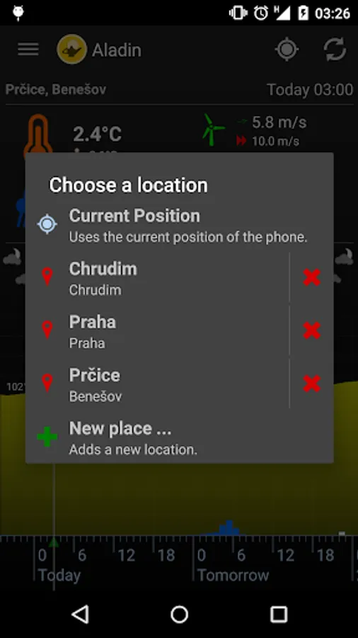 Již nemusíte pravidelně sledovat zprávy v televizi, předpověď na internetu či cokoliv dalšího. Aladin je tu pro vás s nejaktuálnějšími předpověďmi a změnami počasí. Díky aplikaci Aladin můžete být kdekoliv a kdykoliv informování o všech podstatných informacích, jež vás ve spojení s počasím mohou napadnout.