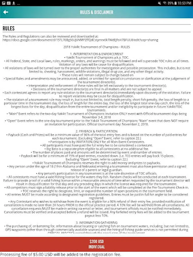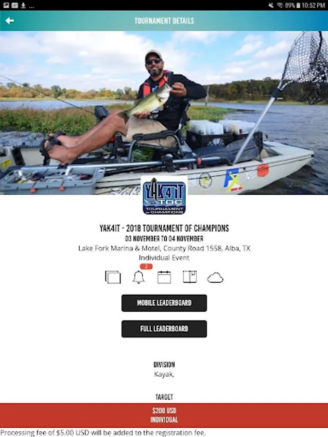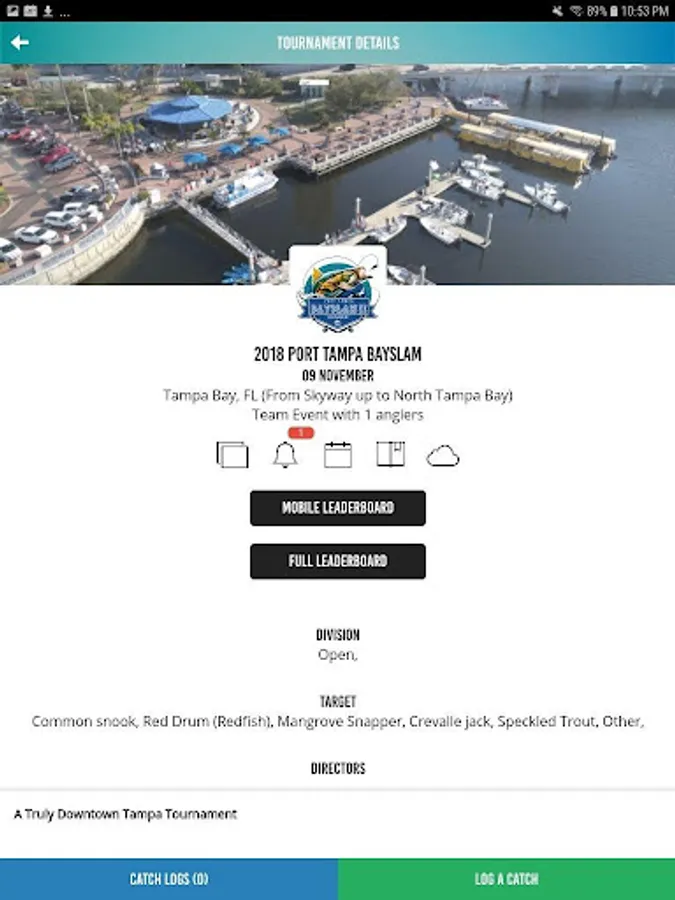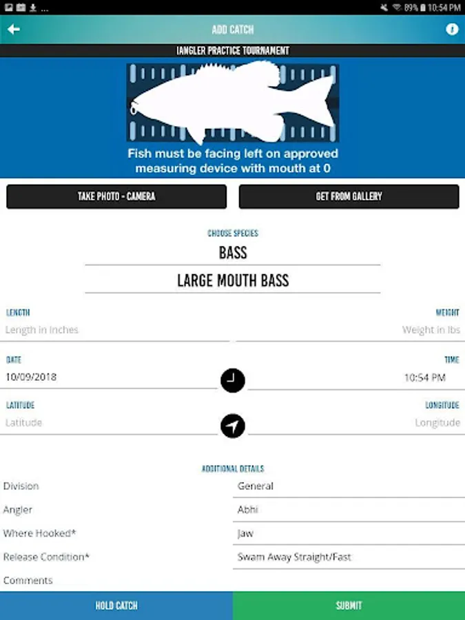 The "iAngler Tournament" mobile application allows anglers participating in registered fishing tournaments to log their catch data while still on the water. App users can also do the following: