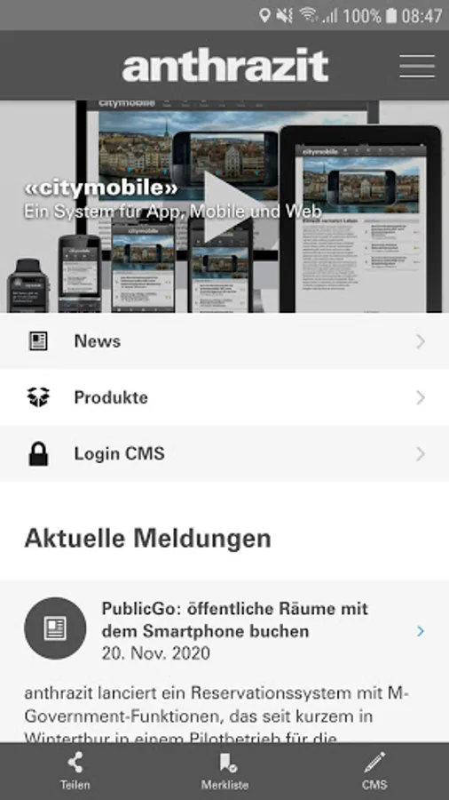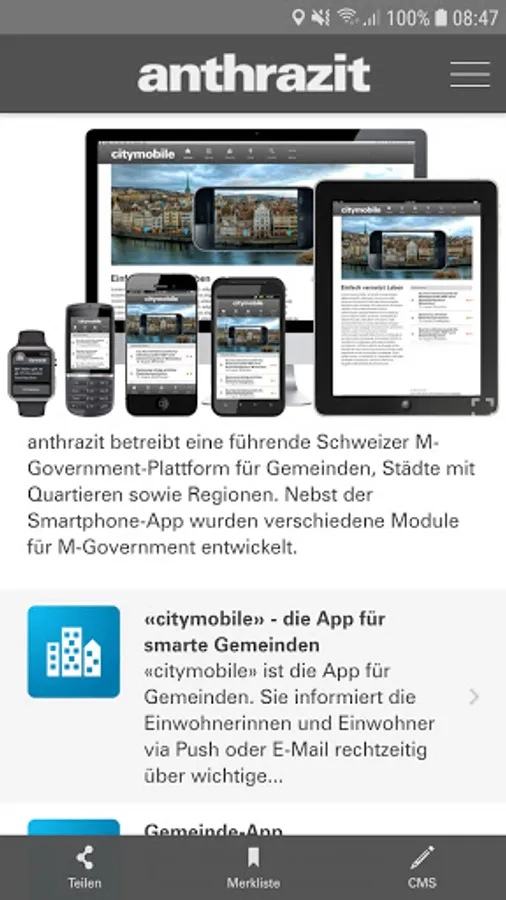 With the moPage CMS of anthracite ag you can create a moPage on your Android and edit.