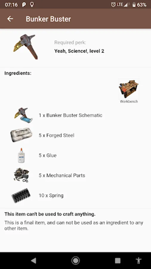 This app will help you quickly locate what ingredients are needed to craft a selected item. You can navigate through the item tree by simply tapping on the items you want to inspect.