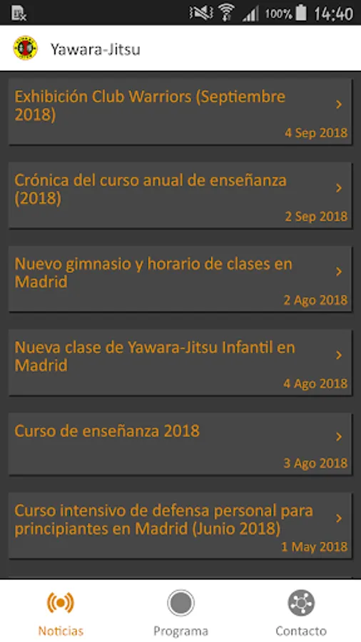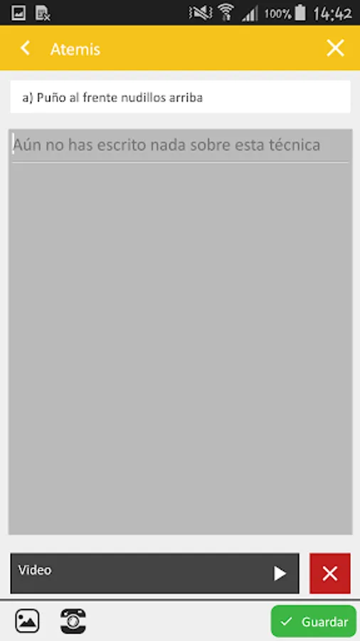 This application collects the elaborate Yawara-Jitsu belt teaching program and allows the study of them, facilitating the possibility of creating annotations in each technique, attaching already recorded videos, or recording one at the moment for later reminder.