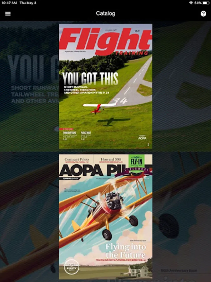 Read “AOPA Pilot” and “Flight Training” on your Android devices. You must have a digital subscription(s) to read these world-class monthly aviation magazines, available only to members of the Aircraft Owners and Pilots Association. Online, one touch delivers videos, slideshows, audio podcasts, and other rich content features. Download issues for easy offline reading.