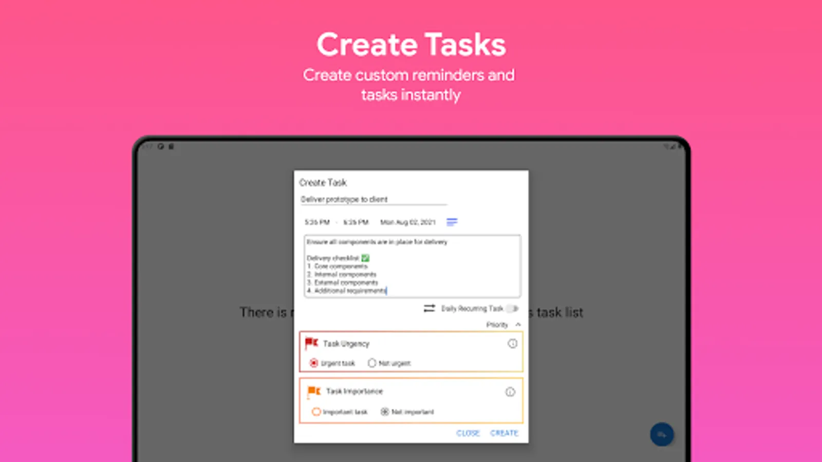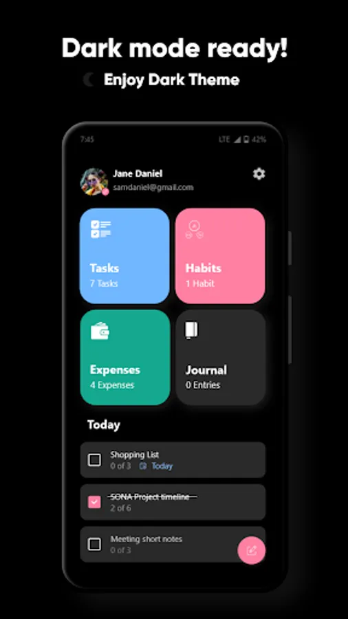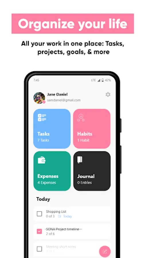 Life Planner gives you task manager, to-do lists, daily schedule, goal tracking, planner, calendar, notes, reminders, checklists, calendar events, shopping lists and more.