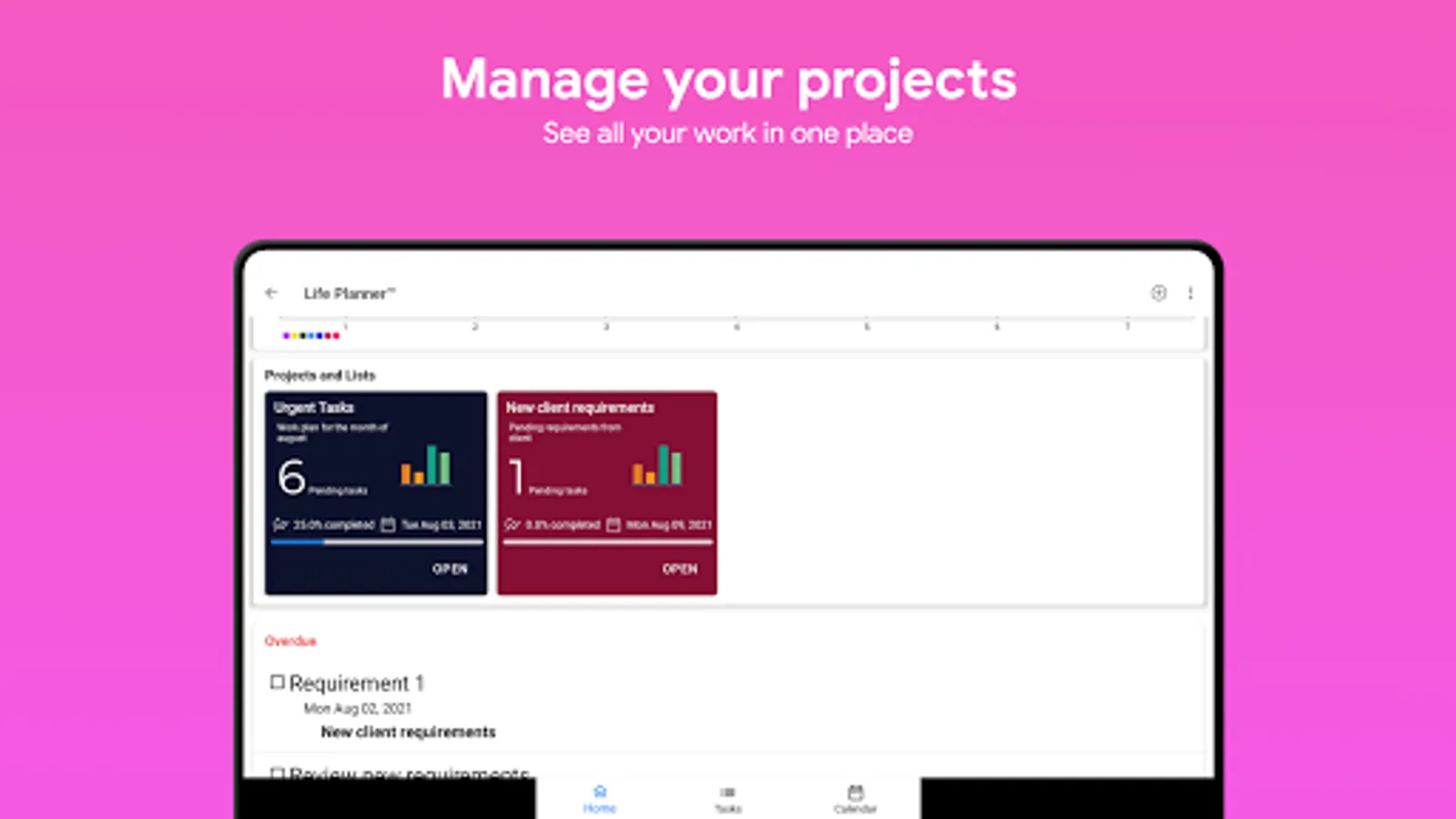 Keep all your work; To-do lists, projects, tasks and calendars are synchronized so you don't forget anything.