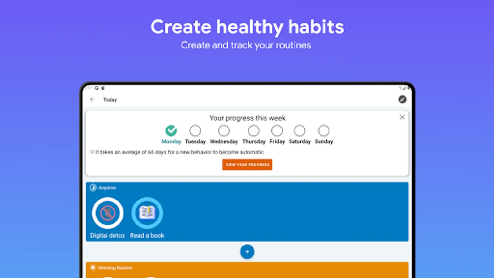 Create different habits and routines, set daily, weekly or even monthly goals.