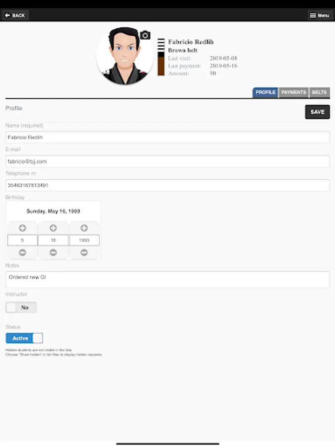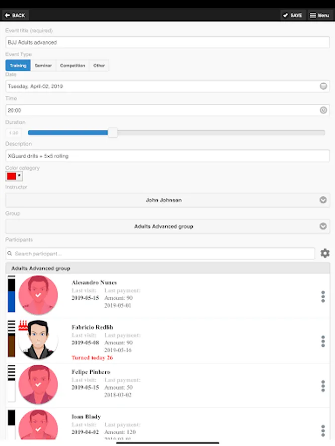 APP was designed especially for Brazilian Jiu-Jitsu instructors, but it perfectly fits for any other sport CLUB or for individual instructors.