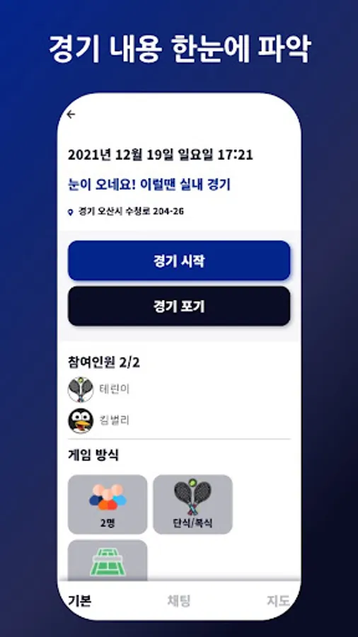 It provides notifications and convenience functions for tennis match matching and actual matches with opponents.
