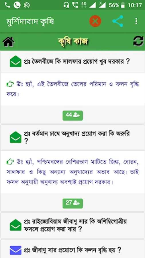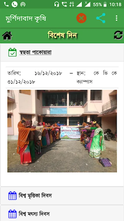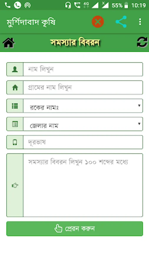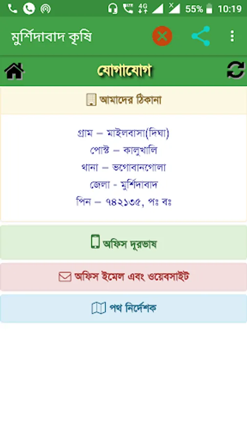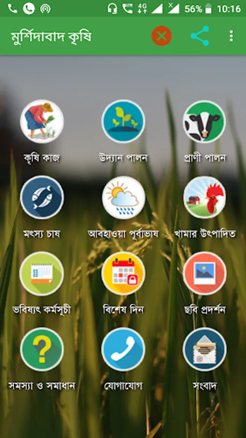 Murshidabad krishi is an agricultural mobile app developed in regional language (Bengali) to help farmers & farm women in agriculture and allied sector. This app provides knowledge of KVK's to farmers. Farmers can access to different question & answer, weather report, upcoming event, farm production, short message, special programme which is completed and farmers can directly talk & send their quary to the Murshidabad KVK.