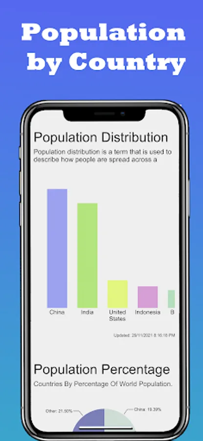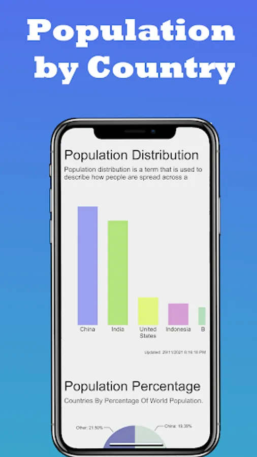 3) A Pie Chart for you the see the portion of population in Different Countries.