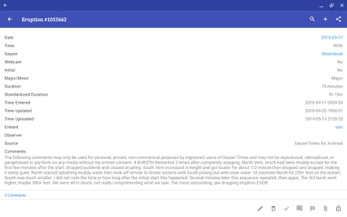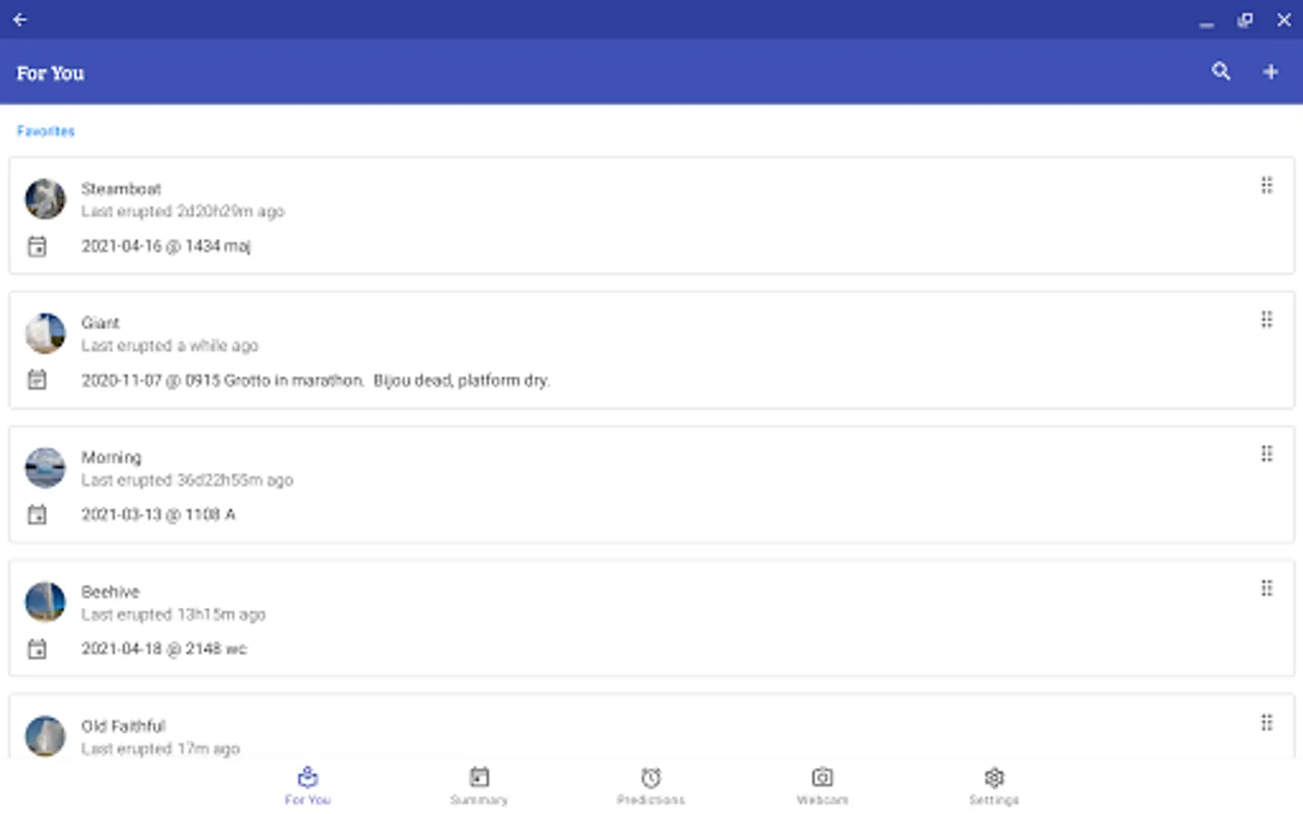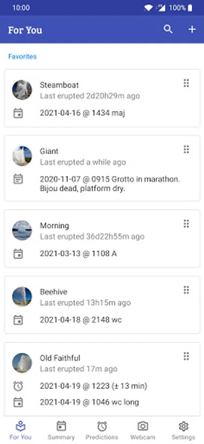 • View the latest information on your favorite geysers in a personalized for you screen.