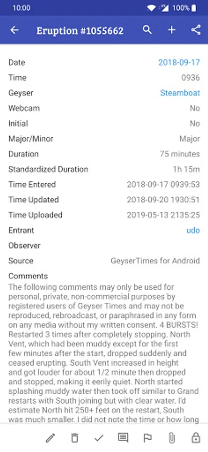 • GeyserTimes Account: for the attribution and credibility of data users must identify themselves using their real name and email address to submit data. All data can be accessed without an account, though.
