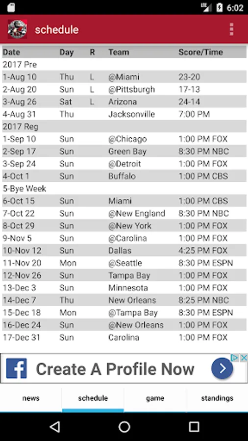 Follow Georgia's team with Atlanta Football, an unofficial app about the Atlanta Falcons. We keep it simple, with Falcons news and opinion, live scores, Falcons schedule with TV listing, and NFL standings.