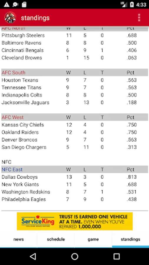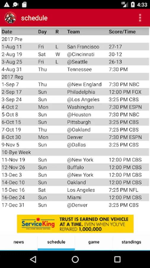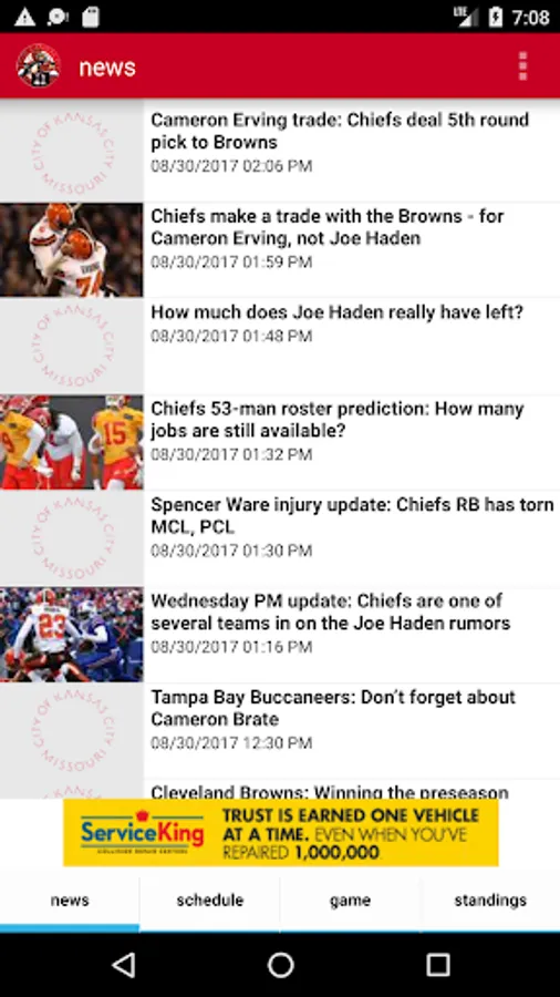 Follow KC's team with Kansas City Football, an unofficial Chiefs fan app. We keep it simple with Chiefs news and opinion, live scores, team schedule, and NFL standings.