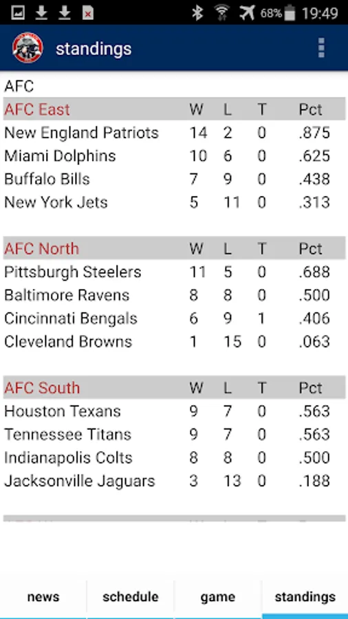Follow the Pats with New England Football, an unofficial Patriots fan app. We keep it simple, with Pats news and opinion, game updates, NE schedule with TV listing, and NFL standings.
