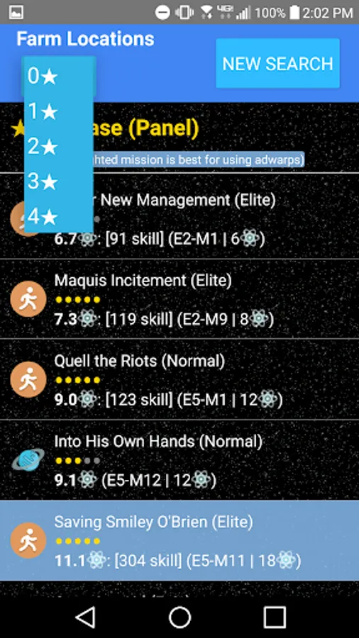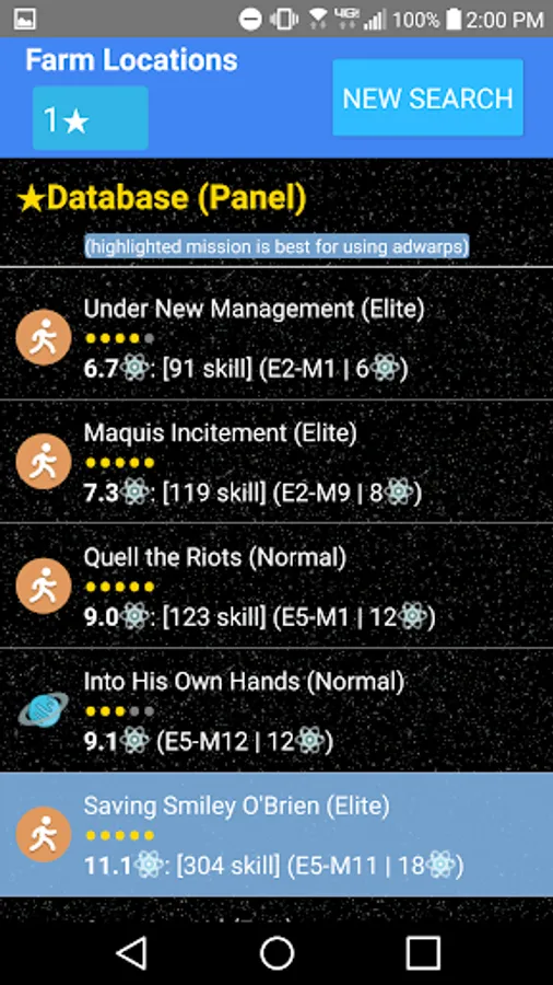 The mission that is best to use the free adwarps on will be highlighted. These missions have the best chance to drop at least 1 of the item in a warp 1.