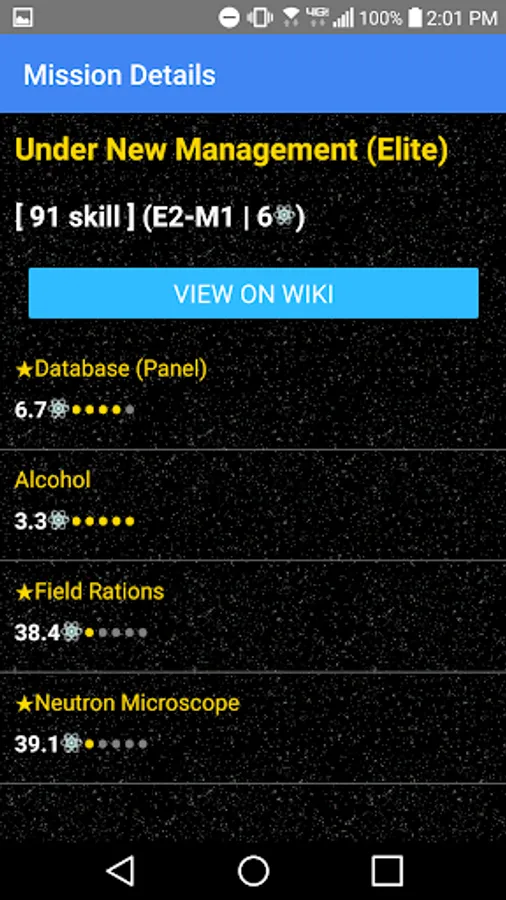 You will be shown the average cost of acquiring that item, the type and name of the mission, the skill check required to pass the level, the missions location with difficulty, and the chroniton cost of the mission.
