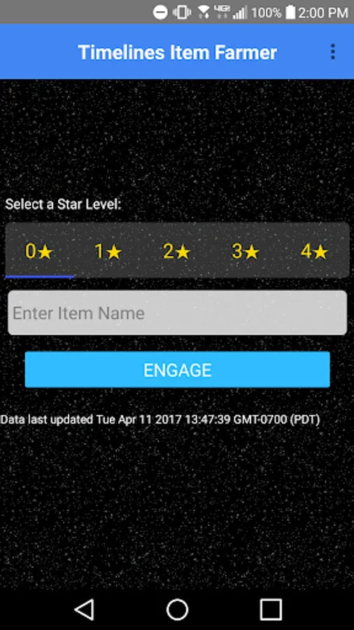 Simply select the star rarity of the item your looking for, type its name (or just part of it), click ENGAGE, and your off to the best places to find the item.
