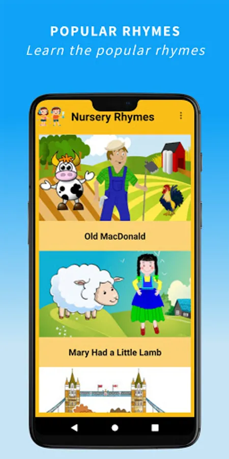 Nursery Rhymes have most popular rhymes included. An offline application, just with one download, no longer need an internet connection to play.
