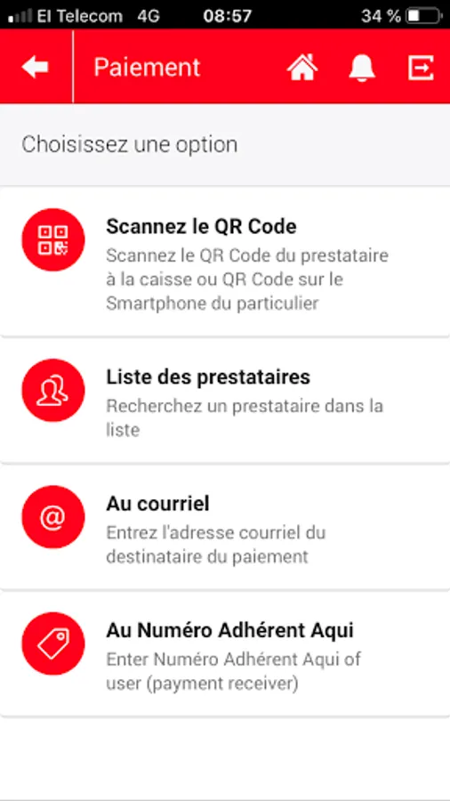 - Pay for your purchases directly at the point of sale by flashing the QR Code of service providers or by selecting them from the application