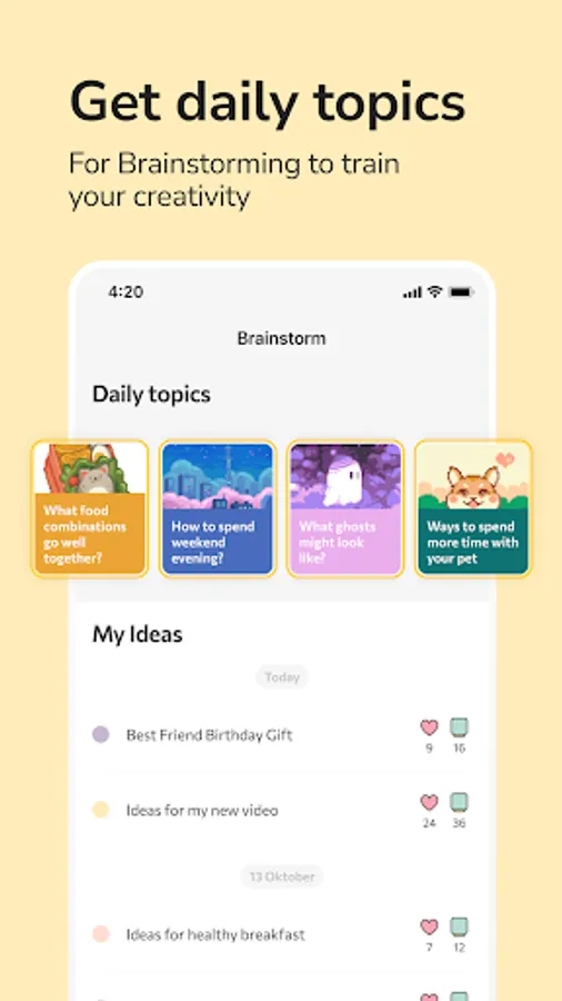 Brainstorming is a method to generate ideas to solve clearly defined problems. We believe the method is suitable to solve problems or tasks we face every day in our lives.