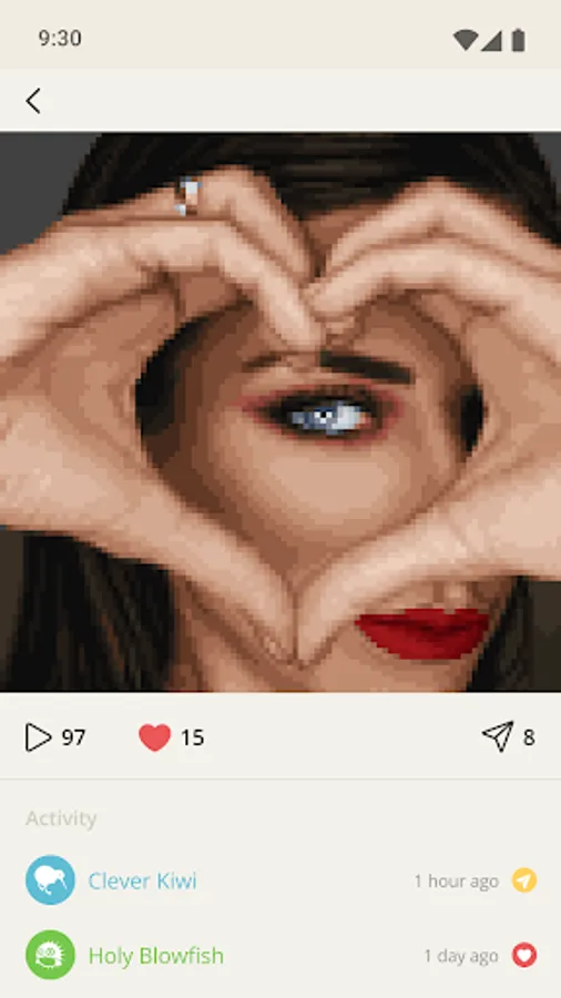 Watch streams - the short-form videos of transformation of plain pictures into colorful and juicy pixel arts.