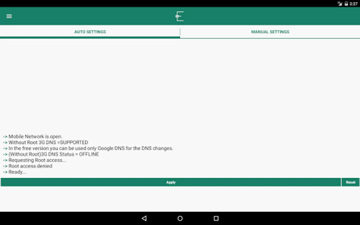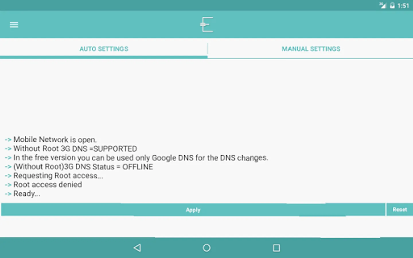 This tool provides to change 3G and WIFI DNS information easly WITHOUT ROOT or with root for Android users. (Engelsiz means in Turkish "unhindered")
