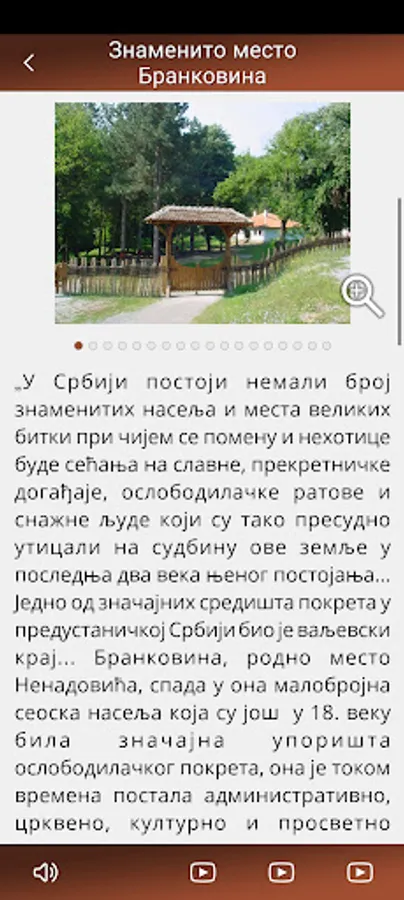 The application is a multimedia guide through the historical ethno complex Brankovina.