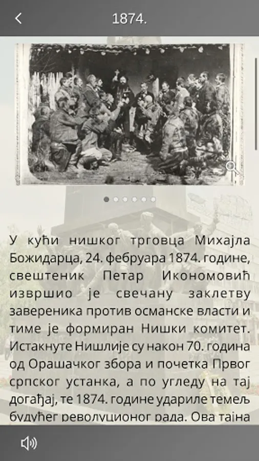 Aplikacija pruža informacije o istorijskim dogadjajima u godinama napisanim na Spomeniku oslobodiocima Niša.