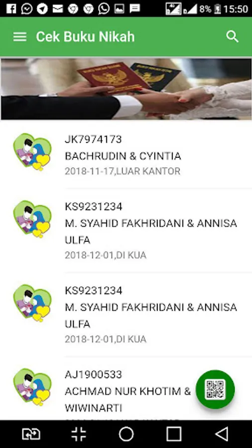 This application makes it easy for people personally as well as agencies and offices to validate product marriage books from the Office of Religious Affairs (KUA). How to validate can be through scanning the qrcode of the marriage card or marriage book. For long marriages, please enter the company code from the marriage book.