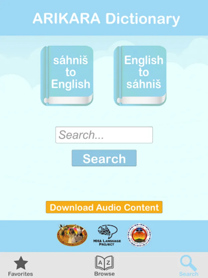 • The ability to search in Arikara or English with a full indexed reference dictionary