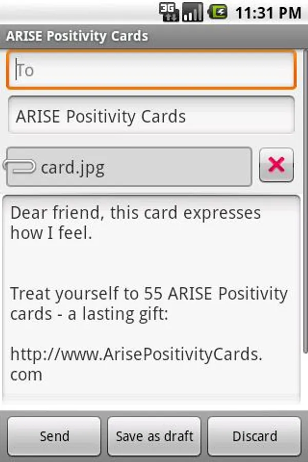 This collection of 55 ARISE positivity cards come with 110 messages (there are two sides to every card) They are life lessons reduced to just a few words using memorable, often amusing concepts and beautiful graphics. Use as directed, these pocket sized images and uplifting quotations can change the way one looks at life. Some suggestions for use: