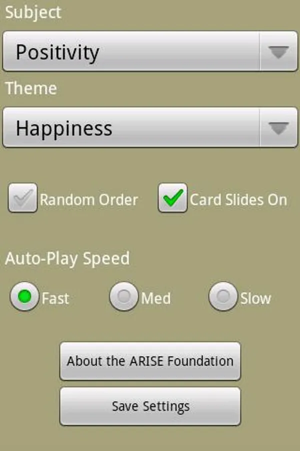 Scroll through the deck using the slider bar. Tap one to turn it over. Narrow your search by selecting a theme. Themes include: