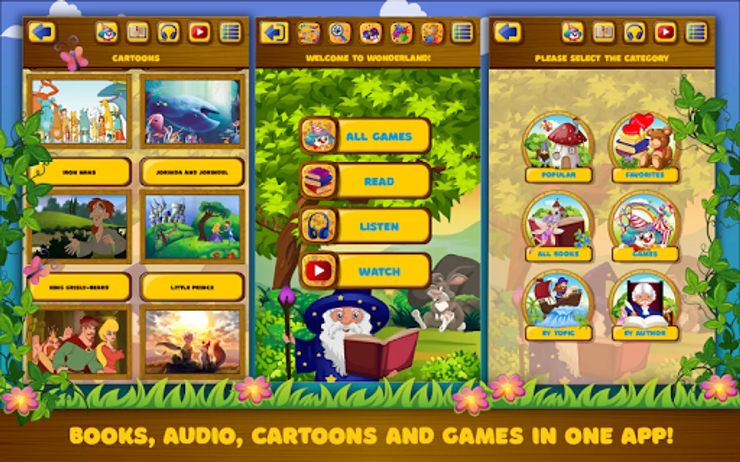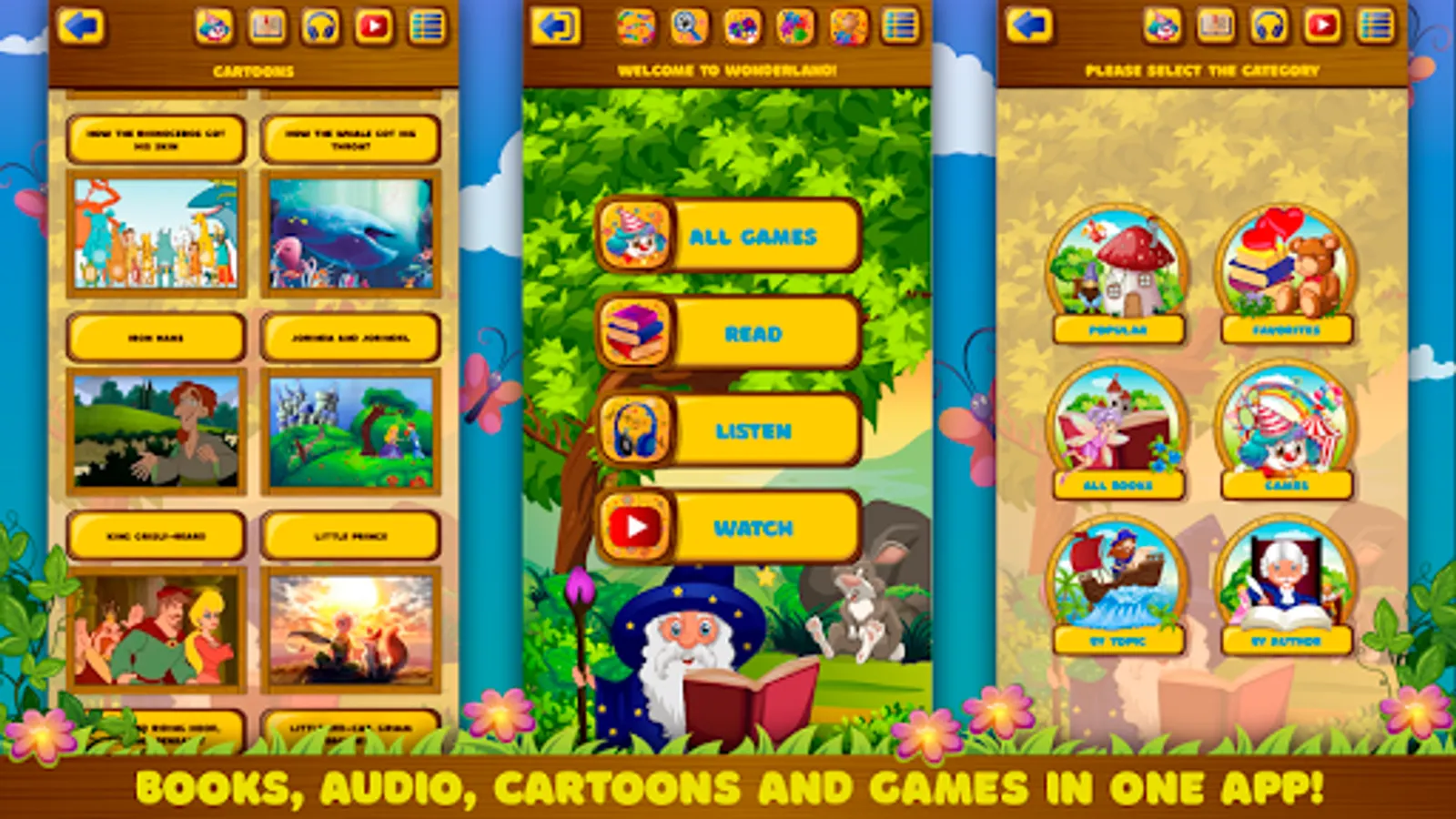 Wonderland is a wonderful place where the good magician has collected more than 300 fairy tales from around the world for children of any age. Both folk tales and works of the best authors are stored on the book shelves in the magic house.