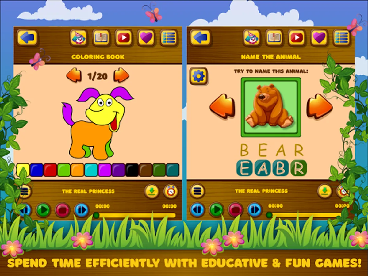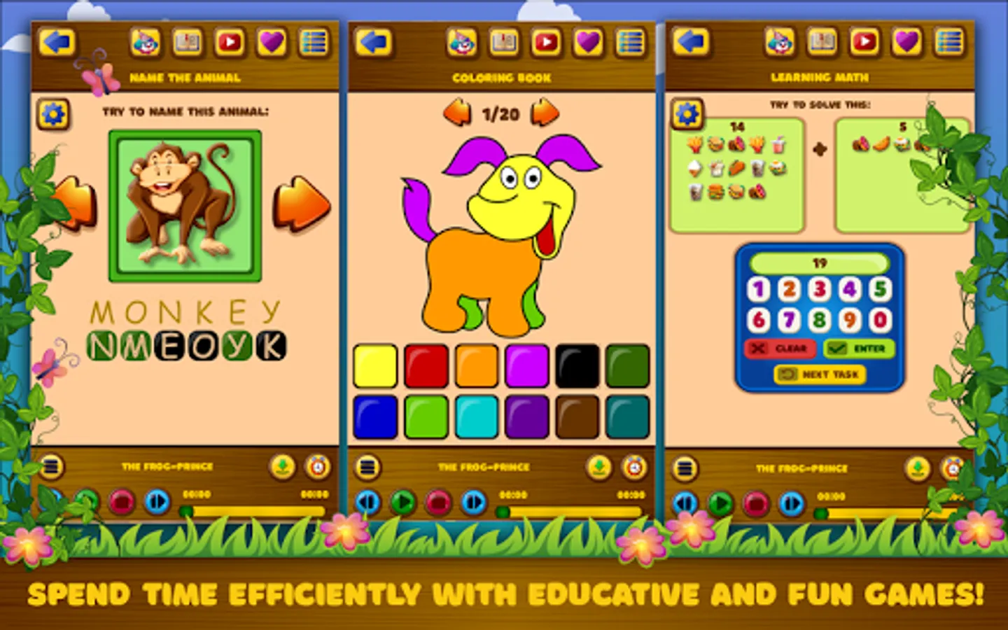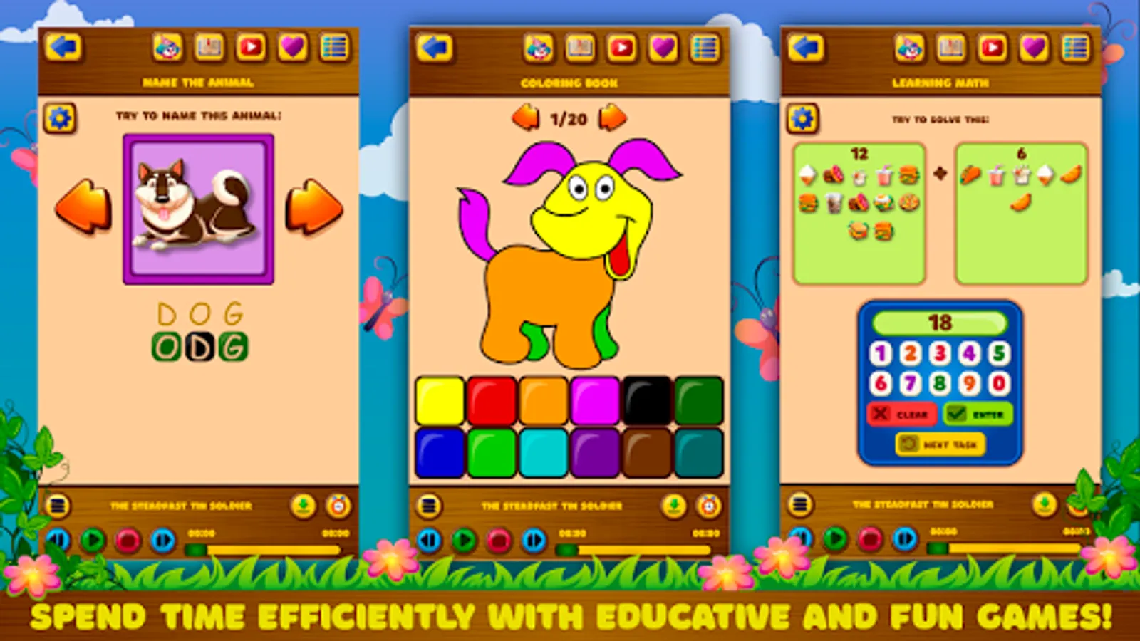 All games can be played while listening to audio, that is very convenient - your child simultaneously listens to his/her favorite fairy tale and practices basic math / writes letters / does puzzles, etc. Also, you can listen fairy tales in the background, that is suitable for bedtime.