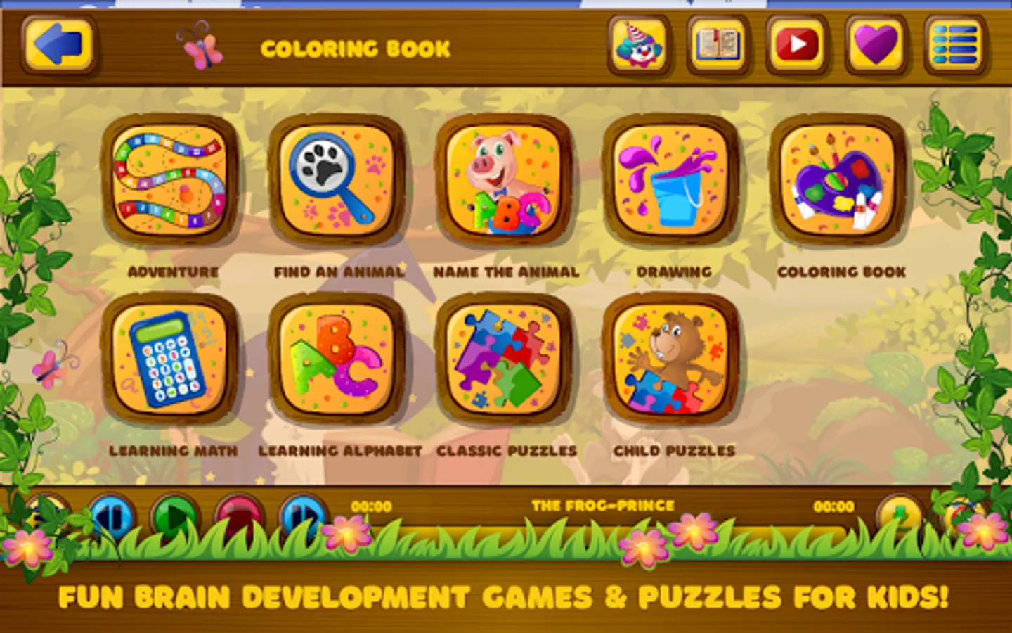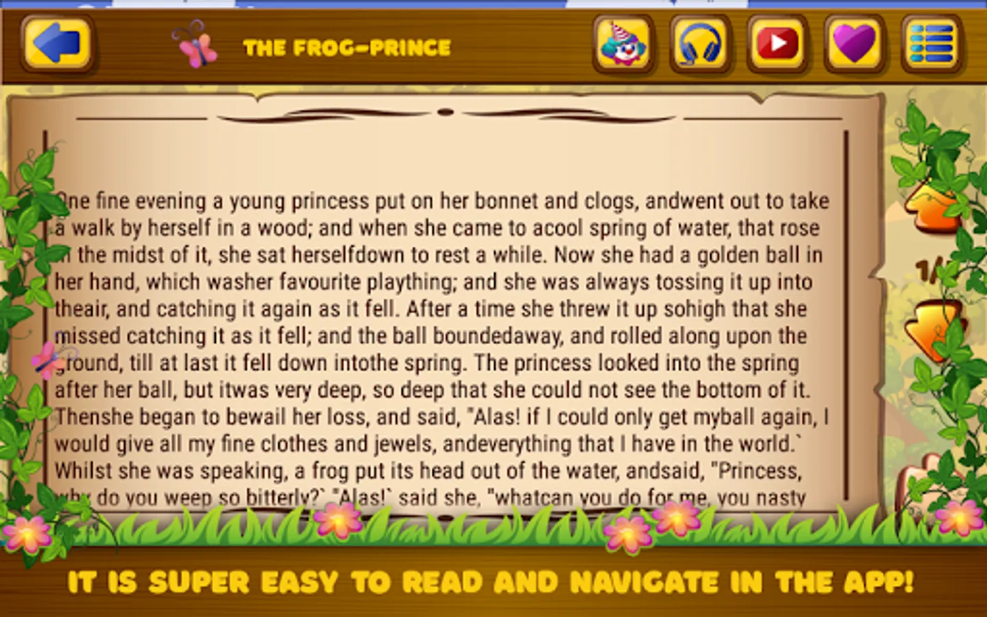 The application is made in such a way that boys and girls of preschool age, who cannot read yet, can flip through bright pages and intuitively find a fairy tale or play games.