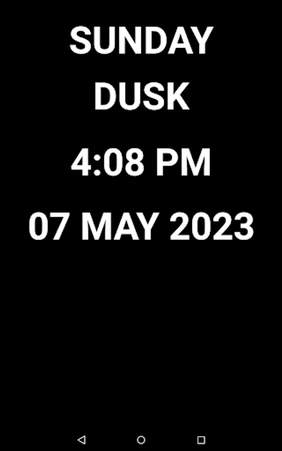 This day clock shows lots of detail about the date and time. Day of the week, full date, time with am/pm plus six categories of 4 hours each: Night, Dawn, Morning, Afternoon, Dusk and Evening. Designed with seniors in mind. Displayed in maximum font size in portrait mode. Helps seniors who have poor eye sight, or disoriented, for example when they wake up from a name, to help them get oriented on what time of day or day of the week, etc. it is.