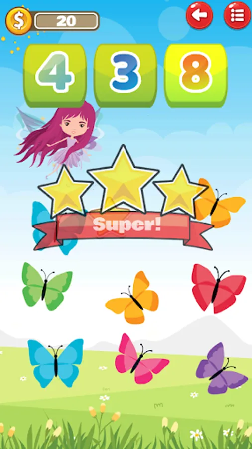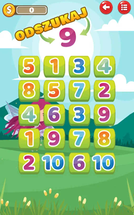 In the application there are 12 mini games in which the Lori fairy accompanies us. The user will help our heroine find stray numbers and count how many butterflies are on the meadow.