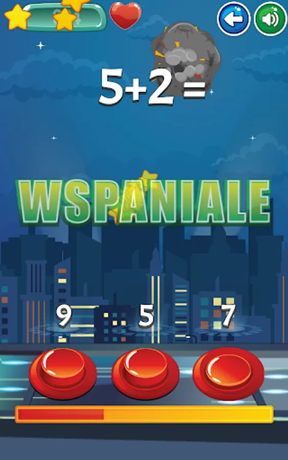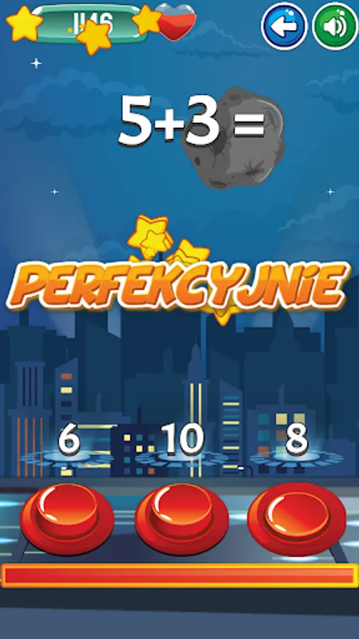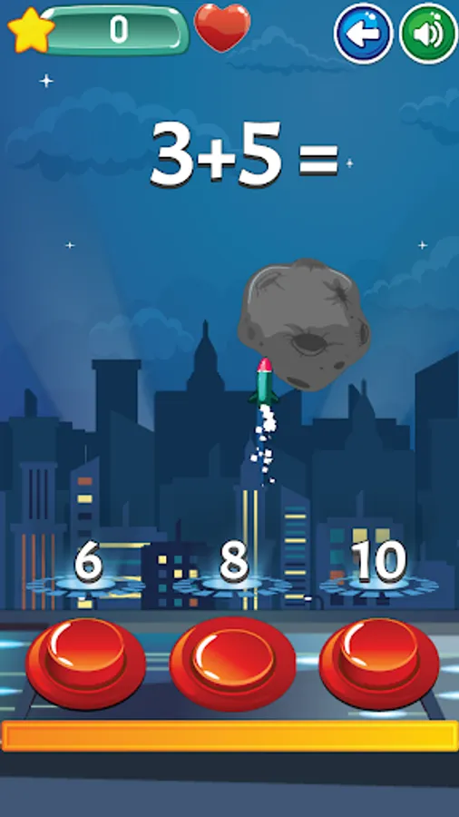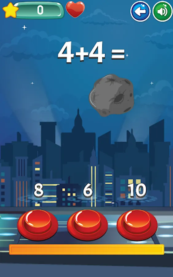 The city is under threat from the meteor shower. The player takes on the role of a superhero who, thanks to mathematical calculations, steers rockets to destroy space rocks and save his city from destruction.